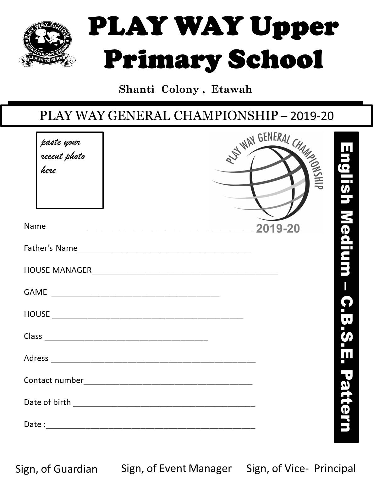 REGISTRATION FORM FOR PLAY WAY GENERAL CHAMPIONSHIP 2019-20